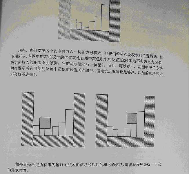 一行一个整数,表示将后加的积木放入坑中最低位置之后,它的上沿距离坑底地面的高度。