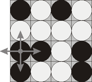 2. 翻转选择的棋子和与它相临的前后左右的棋子(如果有的话)。