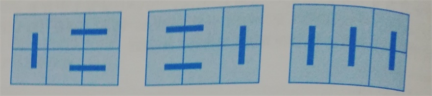 有2×n的一个长方形方格,要用若干1×2的骨牌铺满方格。例如,n=3时,为2×3方格,此时用3个1×2的骨牌铺满方格,共有3种铺法,见下图示:
