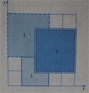 如下图示,1号地毯用实线表示,2号地毯用虚线表示,3号用双实线表示,覆盖点(2,2)的最上面一张地毯是3号地毯。