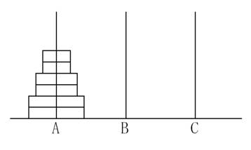 给定A、B、C三根足够长的细柱,在A柱上放有2n个中间有孔的圆盘,共有n个不同的尺寸,每个尺寸都有两个相同的圆盘,注意这两个圆盘是不加区分的(下图为n=3的情形)。现要将这些圆盘移到C柱上,在移动过程中可放在B柱上暂存。