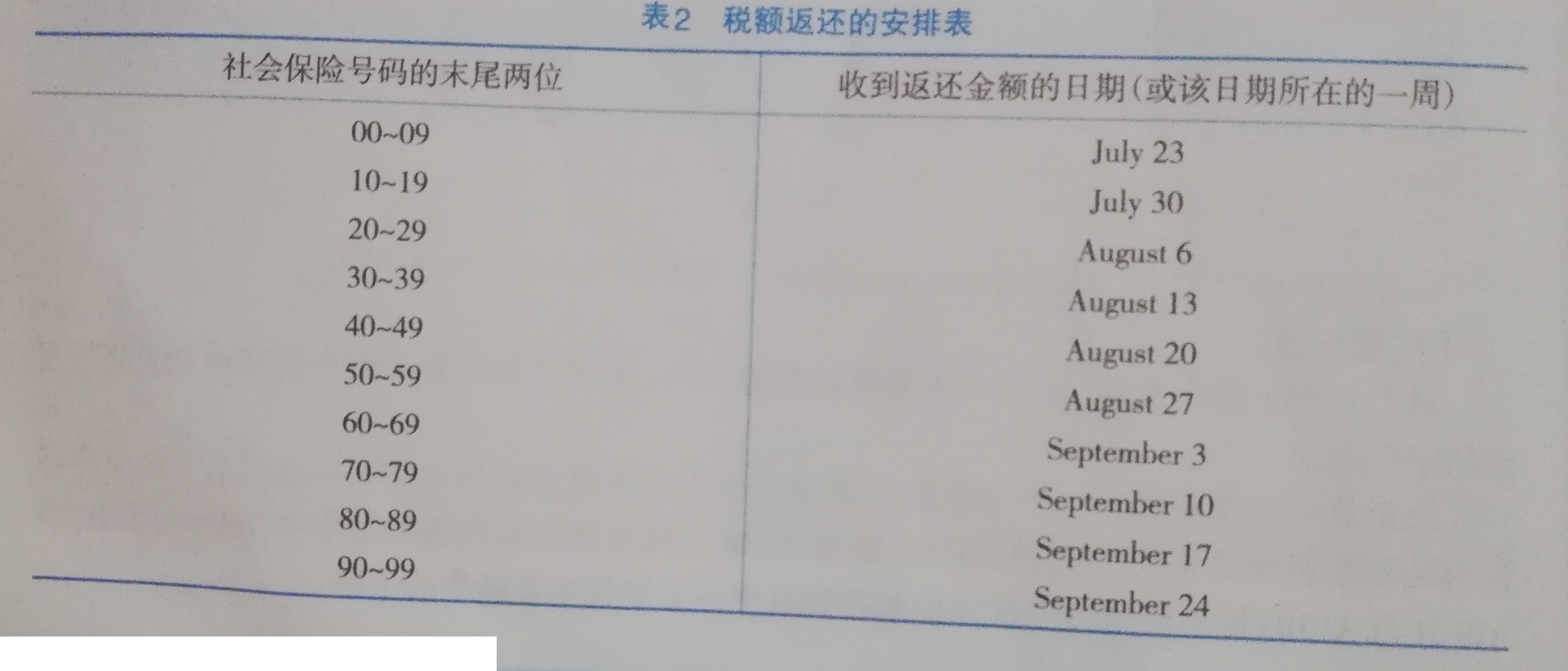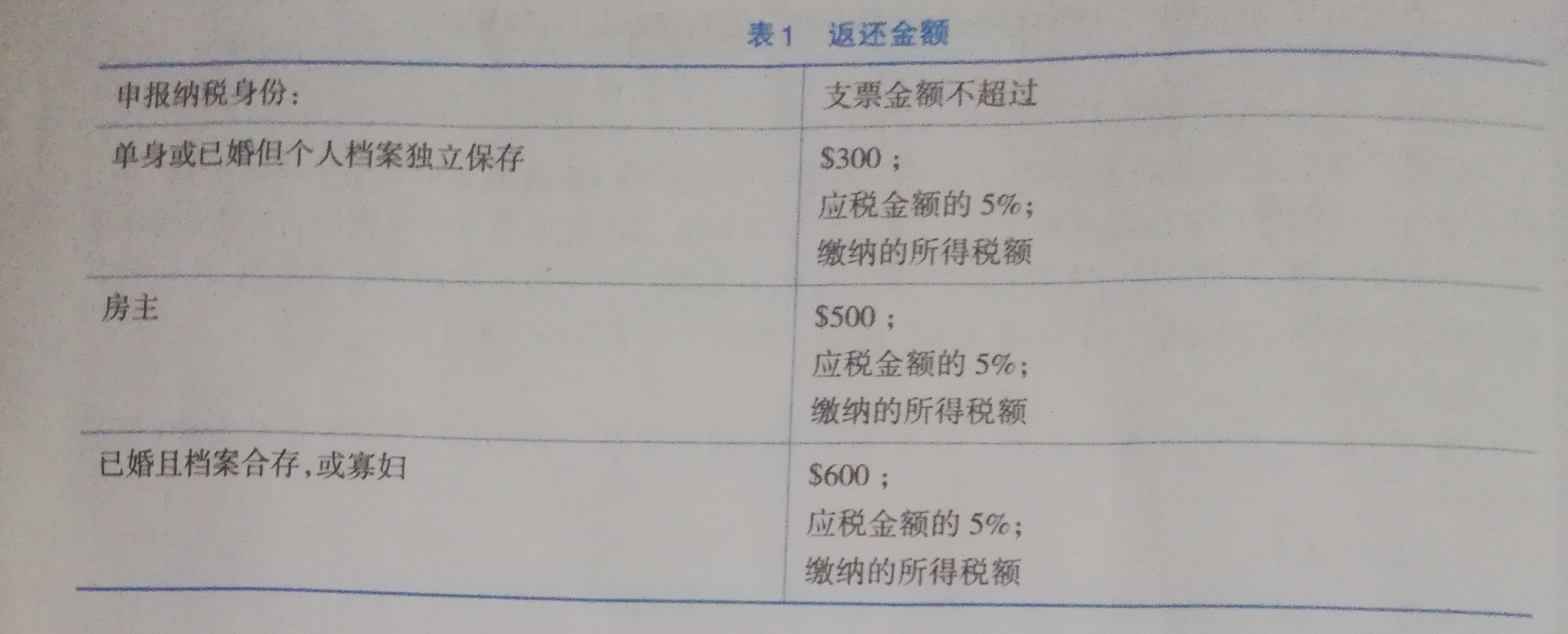 2001年6月,IRS(美国国税局)向联邦政府的纳税人发布了一个通告,通报纳税人2001年经济增长与减免赋税的协调法案已由美国国会通过,并由时任总统布什正式签署。根据法案中直接减免的一部分,纳税人将收到一张支票,它的金额由2000年每个纳税人向联邦政府提交的纳税申报单上的金额决定。通告描述了支票金额的计算方法,如下表示。