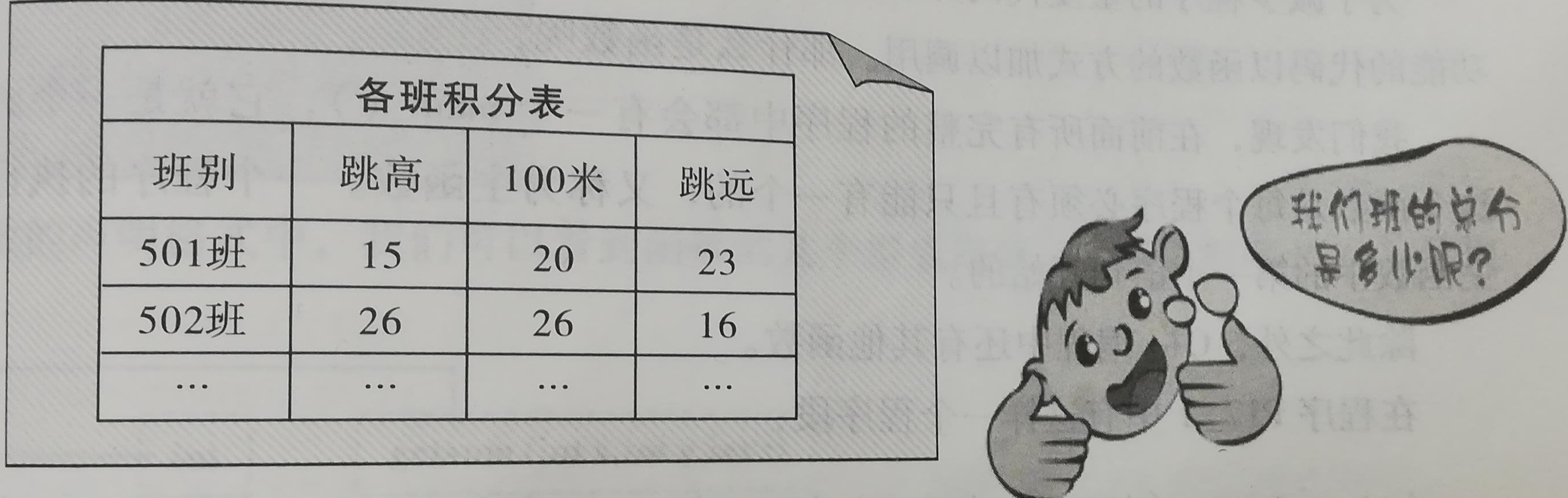 体艺节的校运会比赛快要结束了,每个班都有很多同学参加了多个项目的比赛,为了确定哪个班是总冠军,需要把各班的总分算出来。你知道怎样在程序中又快又准算出各班的团体总分吗?