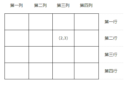 (2,1) (2,2) (2,3) (2,4) {同一行上格子的位置}