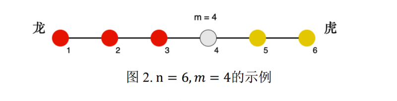 双方以 m = 4 号兵营分界,有 s1 = 5 位工兵突然出现在 p1 = 6 号兵营。龙方的气势为: