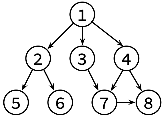 小K 喜欢翻看博客获取知识。每篇文章可能会有若干个(也有可能没有)参考文献的链接指向别的博客文章。小K 求知欲旺盛,如果他看了某篇文章,那么他一定会去看这篇文章的参考文献(如果他之前已经看过这篇参考文献的话就不用再看它了)。 假设博客里面一共有 n ( n ≤ 105 ) 篇文章(编号为 1 到 n)以及 m ( m ≤ 106 )条参考文献引用关系。目前小 K 已经打开了编号为 1 的一篇文章,请帮助小 K 设计一种方法,使小 K 可以不重复、不遗漏的看完所有他能看到的文章。 这边是已经整理好的参考文献关系图,其中,文献 X → Y 表示文章 X 有参考文献 Y。不保证编号为 1 的文章没有被其他文章引用,也不保证每一篇文章都会被引用。
