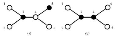 显示了由6台计算机组成的网络,其中黑色节点表示服务器,白色节点