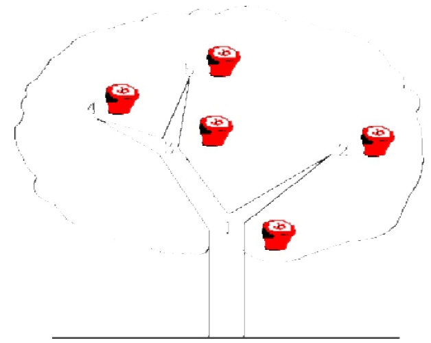 在卡卡的房子外面有一棵苹果树,树上有N 个叉(编号为1~N,根为1),它们通过分支连接。苹果在叉上生长,两个苹果不会在同一个叉上生长。一个新的苹果可能会在一个空叉上长出来,卡卡还可能会从树上摘一个苹果作为他的甜点。卡卡想了解一棵子树上有多少苹果。