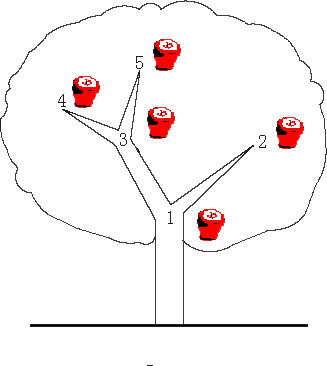 注意:苹果只能长在结点上,并且不会有两个苹果长在同一个结点上。1号结点为根结点。