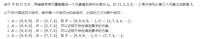 小 R 给了你两个序列 X 和 Y,他希望你找到 X 的一个长度为 l0 = 10100 的拓展 F = {fi} 以及 Y 的一个长度为 l0 的拓展 G = {gi},使得任意 1 ≤ i , j ≤l0 都有 (fi - gi)(fj - gj) > 0。由于序列太长,你只需要告诉小 R 是否存在这样的两个序列即可。